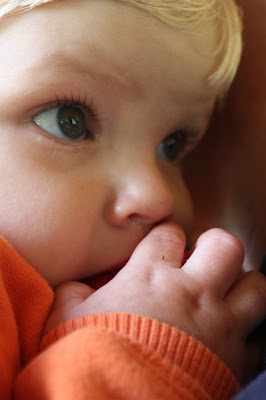 Again, we have Mr. A, this time burrowed into his uncle's shoulder. It had been a really long day of cake, presents, and excitement at that point!
